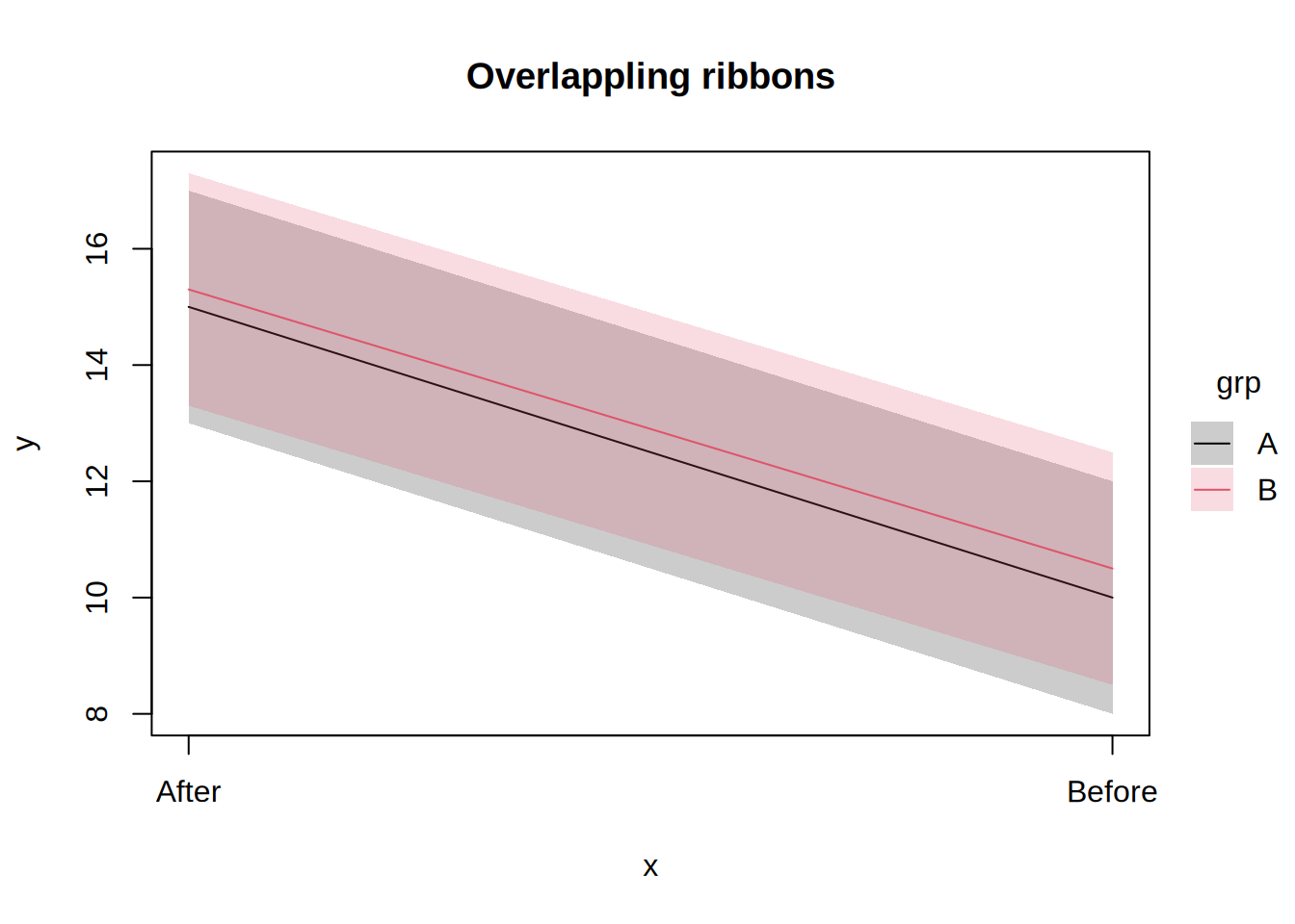 # Dodged ribbon or area plots can be useful in cases where there is strong